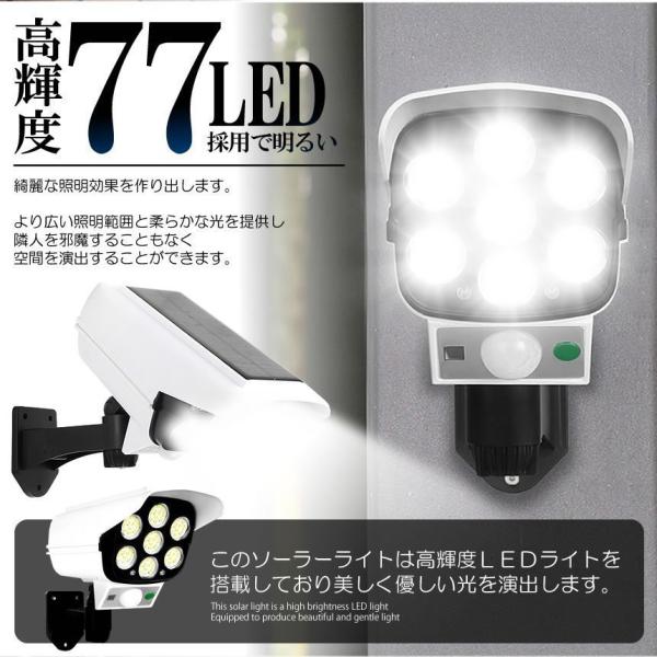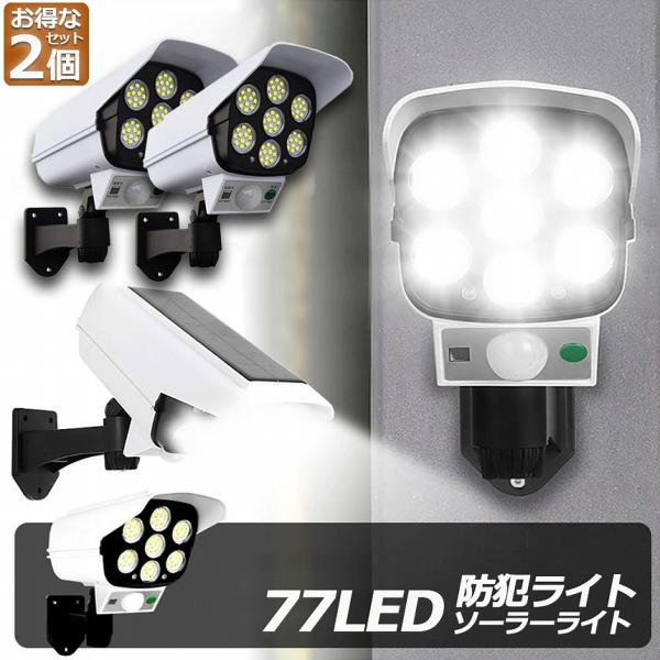 ソーラーライト 2台セット ダミーセキュリティカメラ 77LED センサーライト 屋外照明 人感センサーライト 防犯カメラ型 自動夜間点灯 ダミ