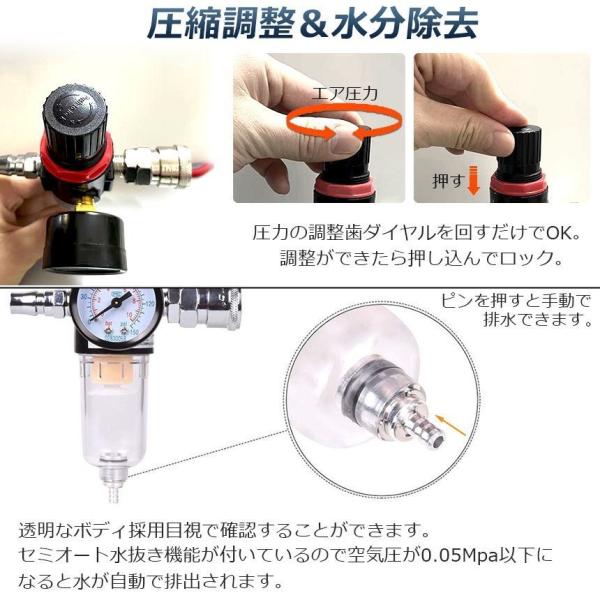 エアー レギュレーター 3個セット ウォーターセパレーター エアーレギュレーター エアフィルター エアーツール 圧力計 エアツール 減圧弁 エア