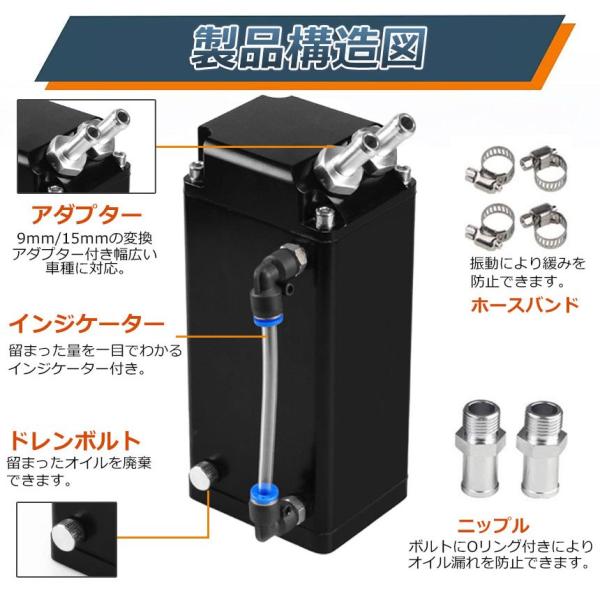 【350ML容量】350ml容量で、一般走行会や公道でのドライブを楽しんでいただくための商品です。競技用のオイルキャッチタンクはもっと大きなタイプを選んでください。