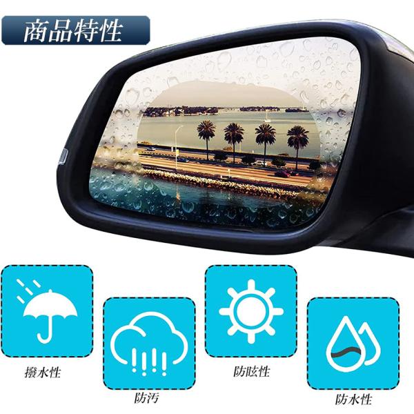 車用防水フィルム 車のバックミラーフィルム カーバックミラー 防水フィルム 4枚入り 車用ドアミラー サイドミラー 汎用型 視界確保 安全運転