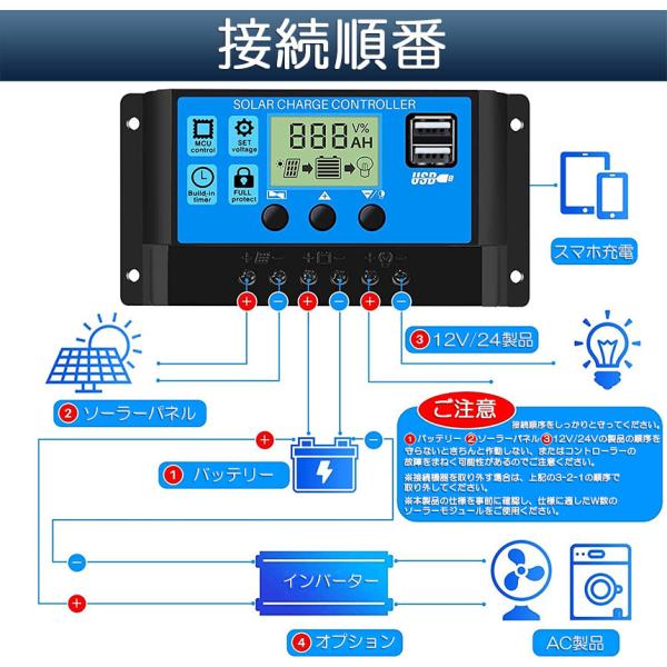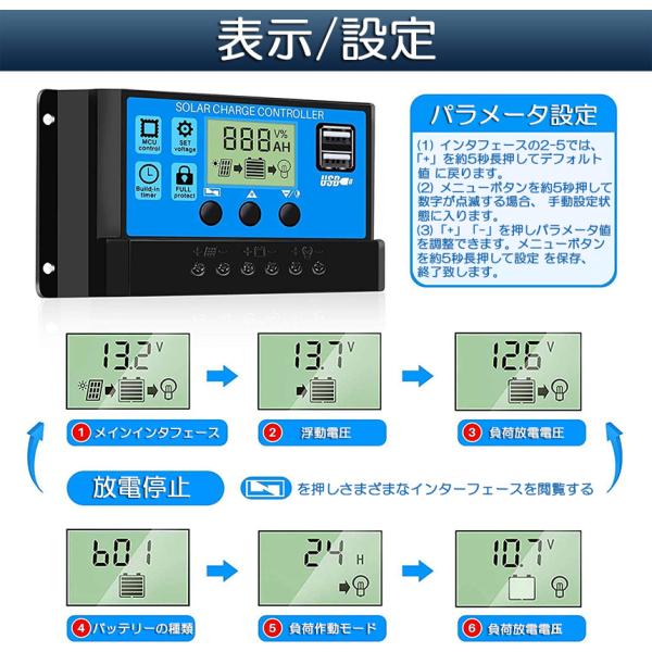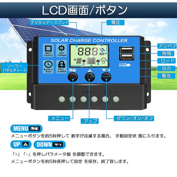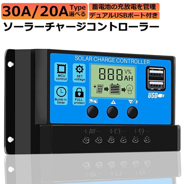 ソーラーチャージ コントローラー 20A 30A 12V 24V 鉛蓄電池車バッテリー充電コントローラー USBポート 付き LCD液晶表示 ソ