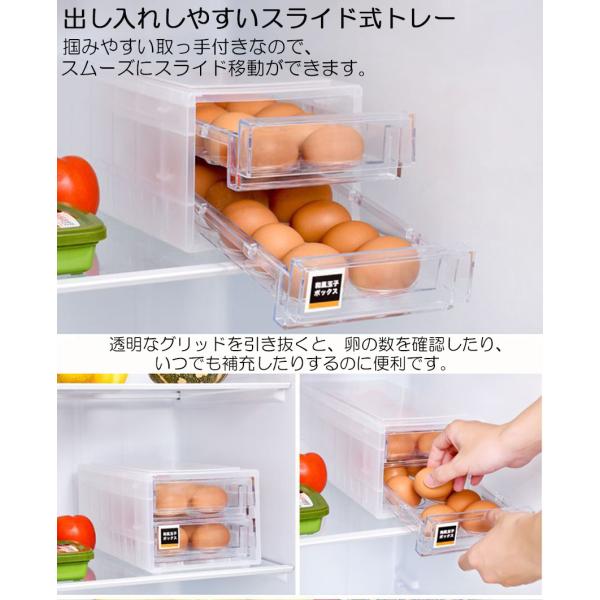 卵ケース 冷蔵庫 引き出し 卵入れ 冷蔵庫用 卵ボックス 卵収納 卵容器 エッグホルダー 24個収納 大容量 クリア 卵容器 収納 アウトドア