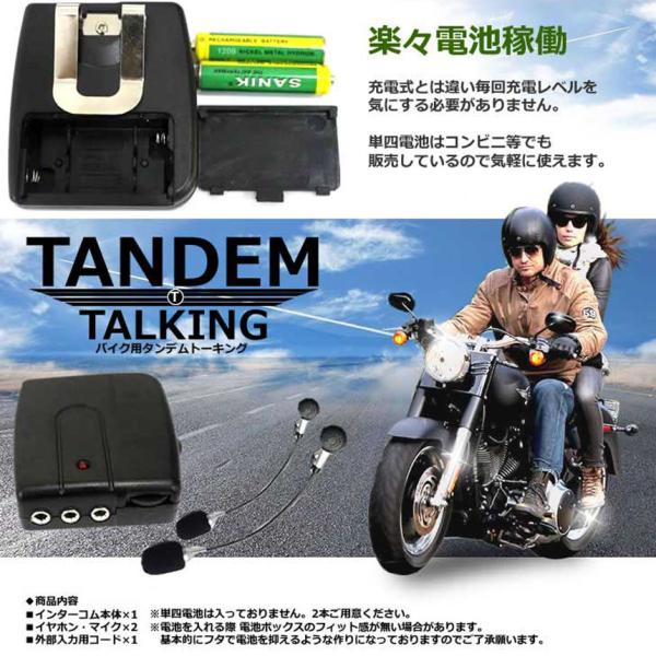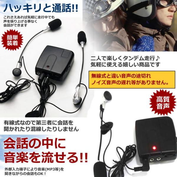 バイク用 インカム 有線インカム ヘルメット イヤホン バイク 電池式 3.5mm ジャック イヤホン マイク 2人乗り 通話 音楽 タンデム