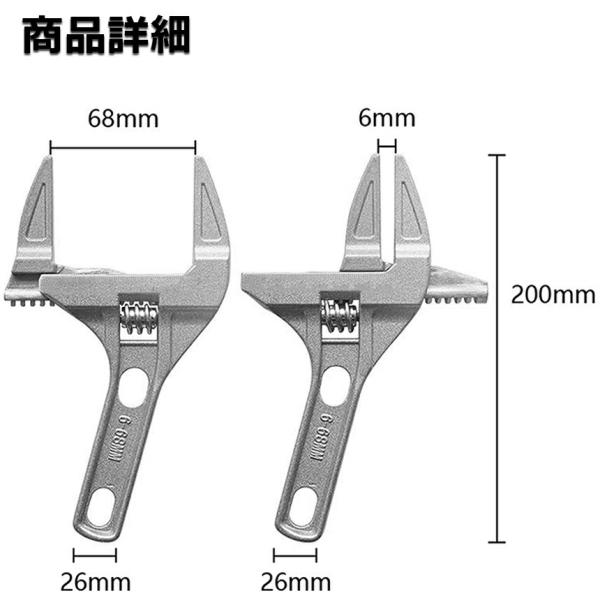 モンキーレンチ たて型 2個セット トップワイド 大の調整範囲 6-68mm 高品質 アルミニウム合金 薄型 ハンドル大開口 DIY 工具 送料