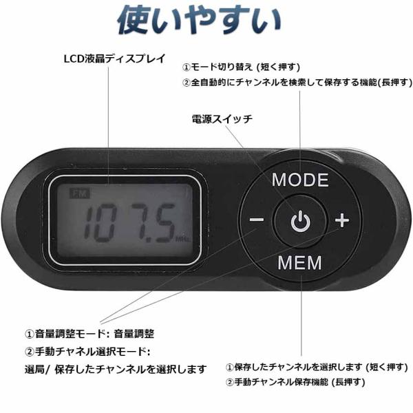 【ワイドFMラジオ】抜群なチップを採用し、20個のラジオFM番組が保存でき、たくさんのラジオ番組を楽しむことができます!プリセット選局方法は下記二つあります:全自動選局して保存する(ATS機能)、手動でチャンネル保存する。更にチャンネル選定方法は下記三つあります:手動選局、自動選局、全自動選局して保存する(ATS機能)、操作がとても便利です。