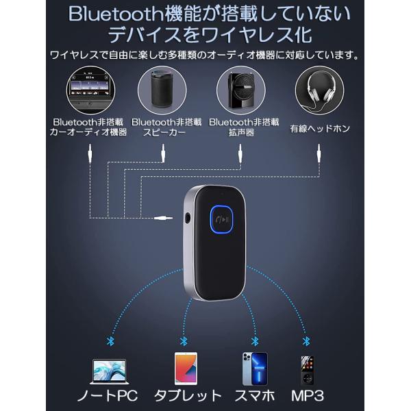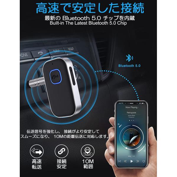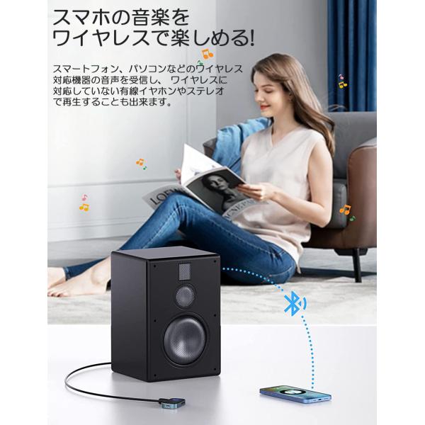 【ワイヤレスで音楽を楽しめる】Bluetooth非搭載のカーオーディオ、ホームステレオ、スピーカー、有線ヘッドホンなどと接続して、ワイヤレスで音楽や通話を楽しむことが可能になります。最新のBluetooth5.0より、安定な接続、速い転送、広い信号範囲を実現でき、音割れ、遅延がない音楽を楽しむしましょう