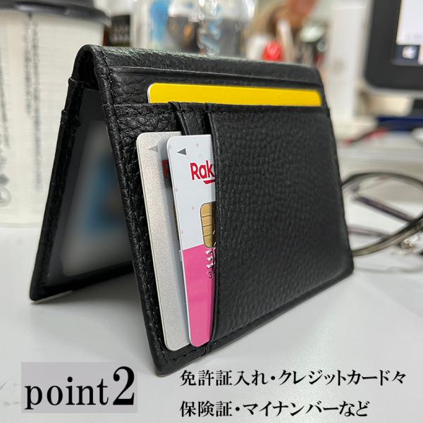 収納例: 免許証・保険証・クレジットカード・キャッシュカード・交通系ICカード・ポイントカードなど