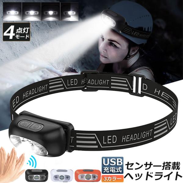 ヘッドライト ledヘッドライト 充電式 USB ヘッドランプ 角度調整可 4種点灯モード 超軽量 高輝度 アウトドア用 ヘッドライト IPX5