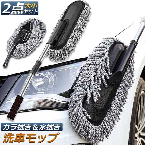 ハンディモップ 洗車モップ 大小セット 車ボディ ホコリ取り マイクロファイバー 洗車 伸縮 モップ 洗車ブラシ 車 埃取り 伸縮式 ボディ用