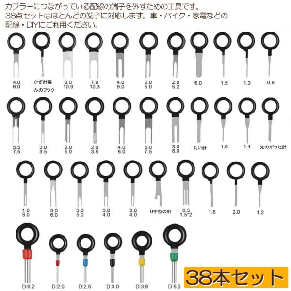 コネクターピン抜き 端子除去ツール 外し 工具 38種類 カプラー コネクター 端子除去 カプラー コネクター 配線 端子 工具 車 バイク 取