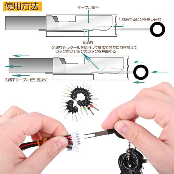【用途】コネクターやカプラーから配線の端子を外すための工具です!38種類のセットになっており、ほとんどの端末に適しています!