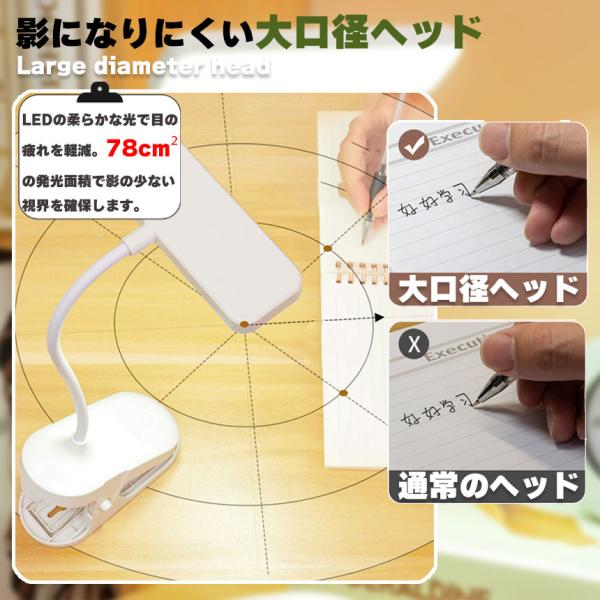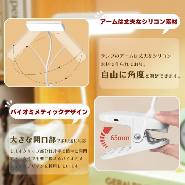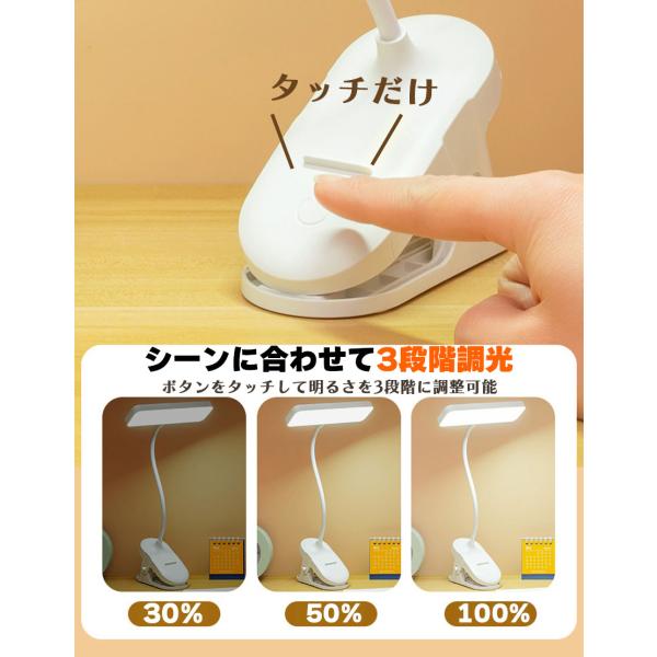 クリップライト デスクライト 読書灯 学習机 LED 目に優しい 3段階調光 勉強 おしゃれ 読書 シンプル 調光 クリップ式 置き型 充電式