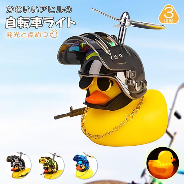 自転車ライト アヒルライト 黄色アヒル 可愛い 自転車ベル プロペラ搭載 ライト点滅 夜間走行に バイク 車にも 夜間