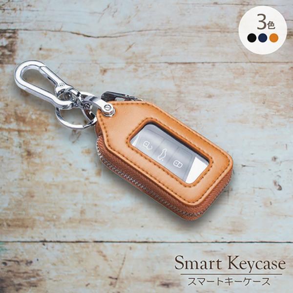 スマートキーケース スマートキーカバー スマートキー対応 キーケース カラビナ付き 多機能 窓付き 3色 3カラー メンズ キーホルダー 車キー