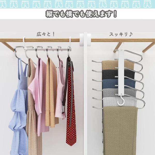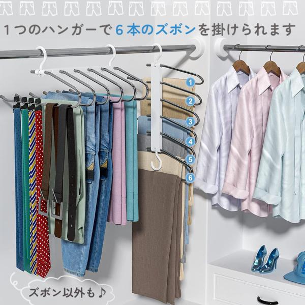 ズボンハンガー 2本セット ハンガー スラックスハンガー 6連 省スペース ステンレス 軽量 収納 スラックス ズボン ネクタイ スカート ベル