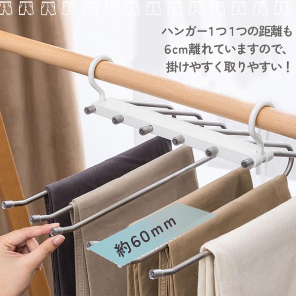 6連の折り畳み式のデザインによって、空間を最大限に利用でき、ズボンが同時に6つ収納可能となります。