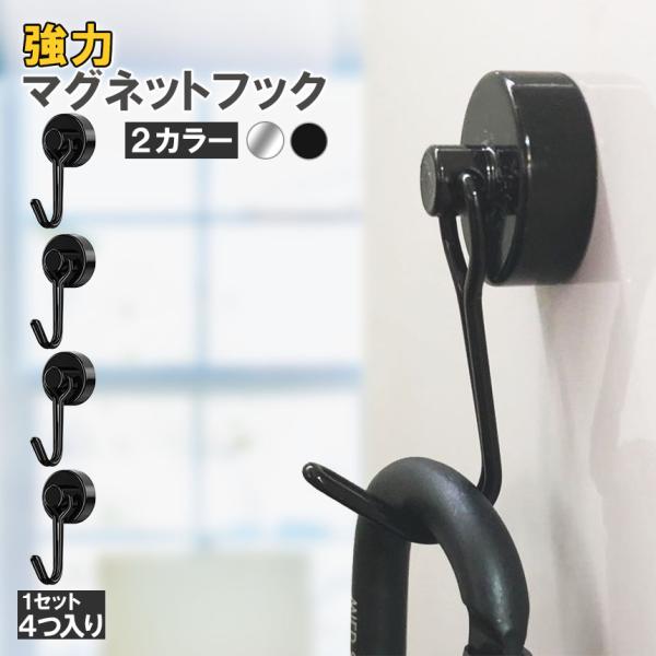 マグネットフック 磁石フック 強力マグネット 4個入り 2カラー キッチン 冷蔵庫 玄関 キーホルダー 浴室 お風呂 壁掛け用 オフィス