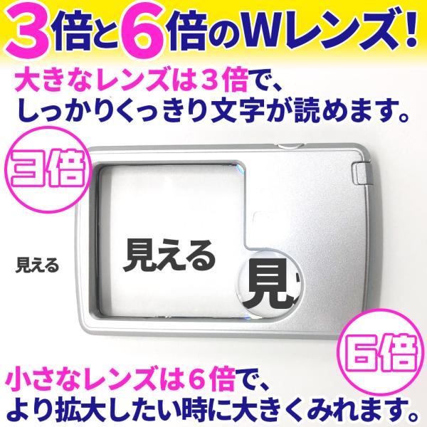 ルーペ LED 拡大鏡 虫眼鏡 カードタイプ ポケット 薄型 3倍 6倍 ライト付き ルーペ付き 携帯ルーペ LEDライト 手持ち カード式
