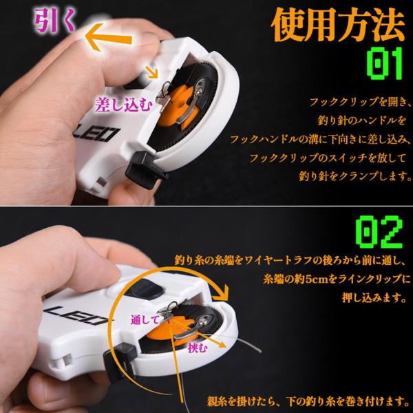 使い方は、ぜひ動画をご覧ください♪■適合ハリサイズ(目安):丸セイゴ5~14号/伊勢尼1~15号/グレ3~7号/チヌ1~9号/マダイ7~13号/カワハギ(スピード)7~8号/カレイ8~16号/狐0.8~10号/袖2~12号/ヘラスレ2~10号■持ち運びしやすく、ケース付きの乾電池式の薄型釣り針結び器です。■初心者でも安心!自動だから、釣り針結びが楽々!■ピストル型だから、握りやすい!