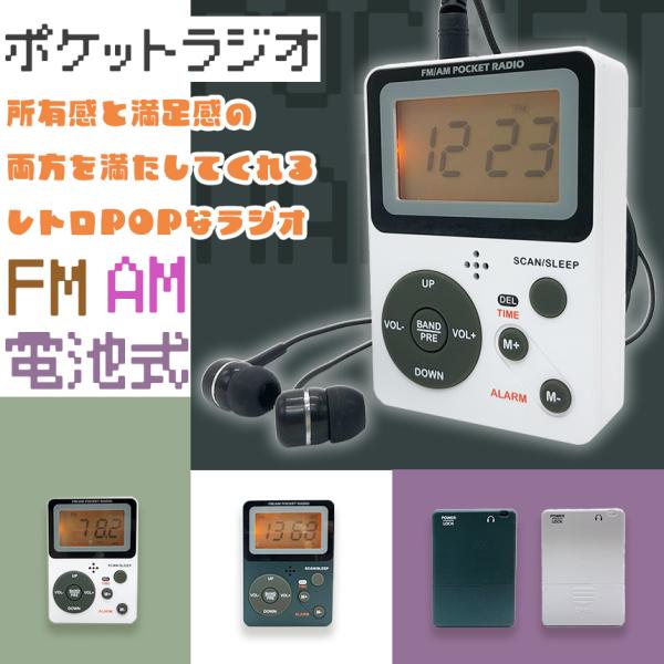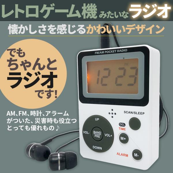 ポケット ラジオ ポータブル ワイドFM FM AM 対応 電池式 時計 目覚まし時計 ミニラジオ 小型ラジオ 携帯ラジオ 通勤ラジオ LCD
