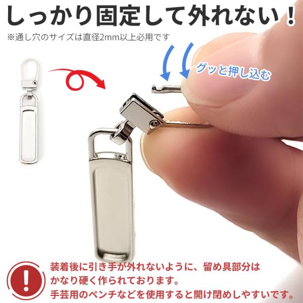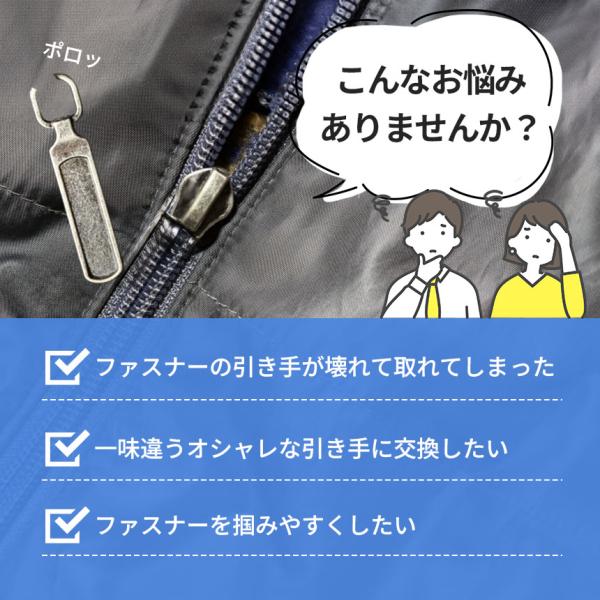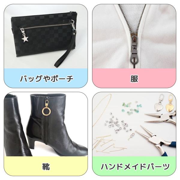 ■壊れたファスナーの交換に!愛用していたバッグや服、ポーチ、靴などの引き手が壊れて使えなくなってしまった方におすすめ!取れてしまった引き手の代わりに装着して使えます!つけるだけでバッグや服のアクセントにもなりオシャレを楽しむことができます