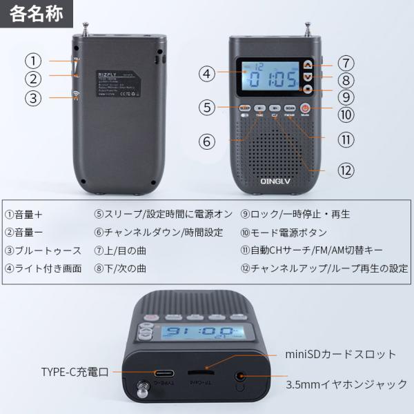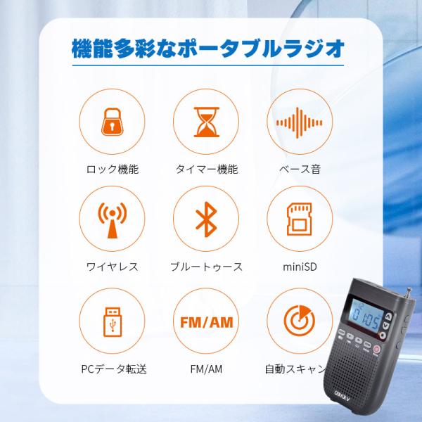 【多機能な充電式ポータブルラジオ♪】コンパクトサイズながらすごい多機能、type-cコードとストラップも付属!災害時から、ご自宅、電車などの公共場所にも便利なポータブルラジオです。ラジオ・スピーカー・目覚まし(予定時刻にラジオ)・自動電源オフ・microSDでの音楽プレイヤー・Bluetooth・ワイヤレススピーカー機能を備えた超多機能モデルです。ライト付きLCD画面つきでとても見やすいです。