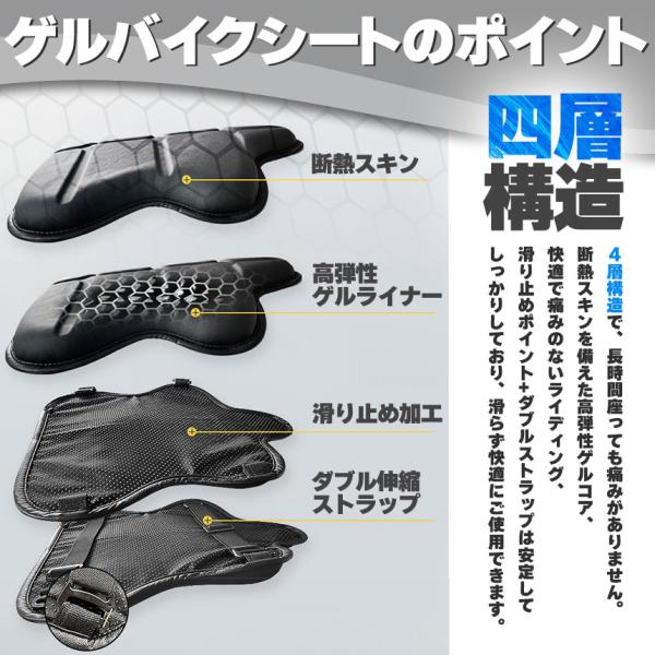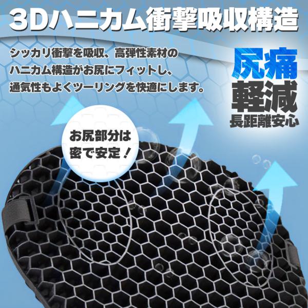 バイク シート クッション ゲルクッション ゲルシートカバー 3D 耐摩耗 四季通用 通気 衝撃吸収 人間工学 断熱 日焼け止め 濡れ