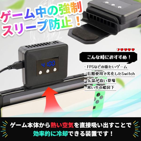 Switchが熱を持ちやすく突然ゲームが落ちてお悩みの方へ!・FPSなどの重たいゲームのプレイ中・長年使用しているゲーム機で内部の機能が劣化している・気温が高くなる夏場・寒い冬の暖房下などといった場面で活躍!快適なゲームライフをサポートします!