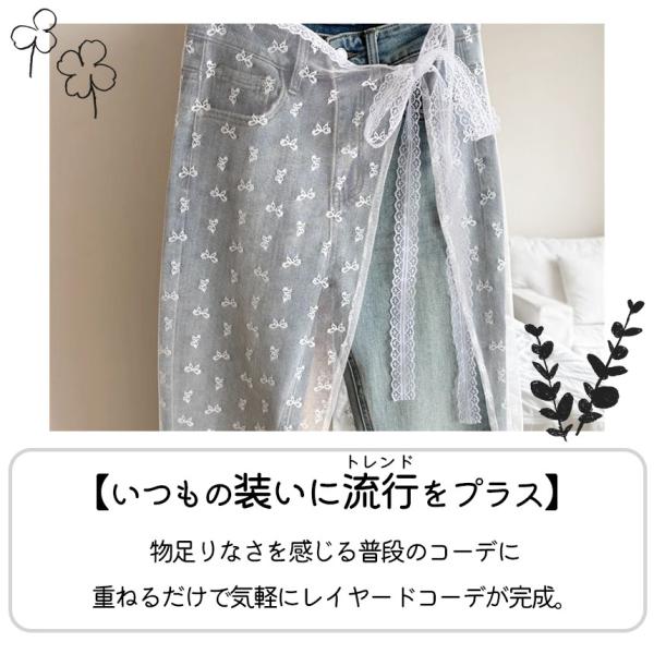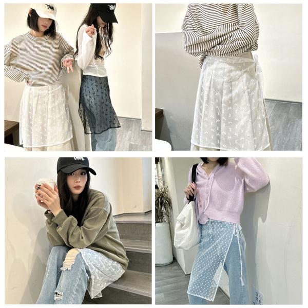 レースラップスカート最近のファッショントレンド「レースラップスカート」SNSや雑誌でもたびたび取り上げられ話題となっています。カジュアルスタイルからフォーマルスタイルまで。グランジ、バレエコア、y2kなどのトレンドファッションにも、レイヤードコーデが手軽にできるアイテムを取り入れてみませんか?エレガントなデザインレース素材の繊細なデザインが、女性らしさとエレガントさを引き立てます。調節可能なフィット感ラップスタイルのため、ウエストのサイズを自由に調節でき、さまざまな体型の方にお楽しみいただけます。多様なスタイリングレースラップスカートは、トップスやアクセサリーと組み合わせてカジュアルからフォーマルまで幅広いスタイルに対応できます。【選べる柄・カラー】リボン黒リボン白フラワー白ハート白【素材】ポリエステル【生産国】中国