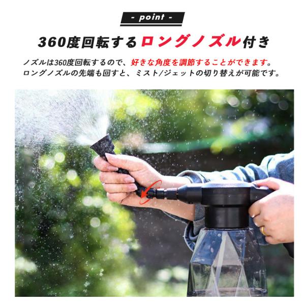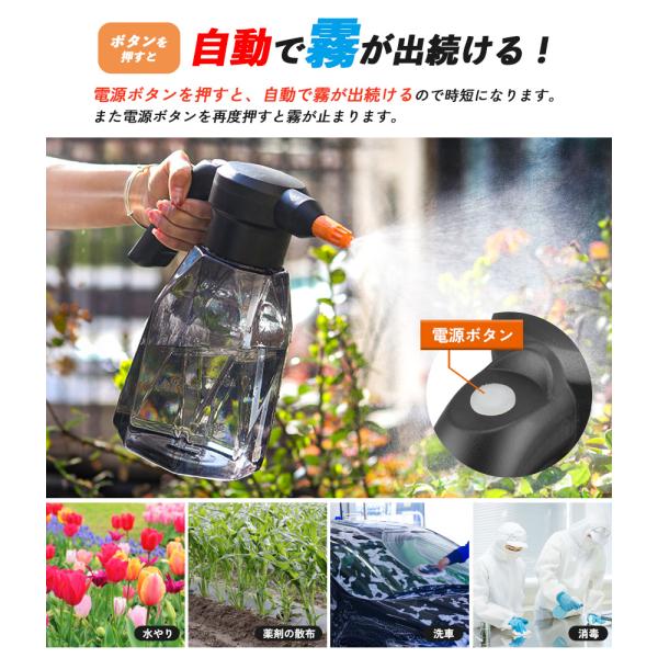 未来ネット ★★★★★ 4.5(1,706件) 噴霧器 充電式 電動噴霧器 充電式噴霧器 電動 除草剤 散布 送料無料 噴霧器 充電式 電動噴霧器 充電式噴霧器 電動 除草剤 散布 薬剤 消毒 雑草駆除 害虫駆除 水やり 液肥 コードレス 家庭菜園 ガーデニング ●自動噴霧でラクラク時短! 噴霧器●【ボタンを押すと自動で霧が出続ける!】電源ボタンを押すと、自動で霧が出続けるので時短になります。また電源ボタンを再度押すと霧が止まります。自動噴霧なので水やりや掃除、洗車、消毒など様々な場面で役立つこと間違いなし! 未来ネット 人気ランキング もっと見る 未来ネット 商品一覧 もっと見る