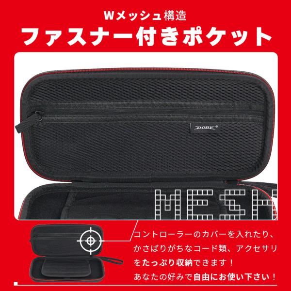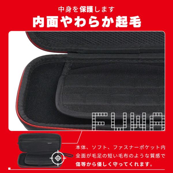 ●軽量でも耐衝撃!SWITCH2ケース●【高密度EVA素材】軽くて丈夫な高密度EVA素材を使ったケースなので、軽量ながらも耐久性があります。屋内保管はもちろん、旅行や友達の家、持ち運びにも大活躍!【内面保護】Wファスナーを開けたら、中は起毛素材で本体やアクセサリを保護してくれます。【ファスナー付きの収納】メッシュで中身が見えるファスナー付きポケットがあるので、コード類やアクセサリも一緒に持ち運べます。もちろん、ポケット内も起毛素材です。x
