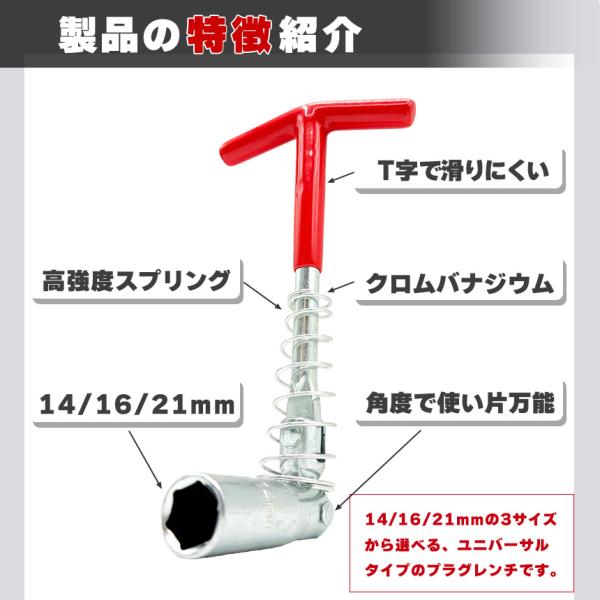 プラグレンチ ユニバーサル式 T型 14mm 16mm 21mm プラグソケット ソケットレンチ スパークプラグレンチ バイク 車 メンテナンス 工具 自動車 整備 DIY エンジン プラグ交換 カー用品 バイク用品 レンチ 六角 高耐久 クロムバナジウム鋼 スプリング付 プラグ交換用レンチ
