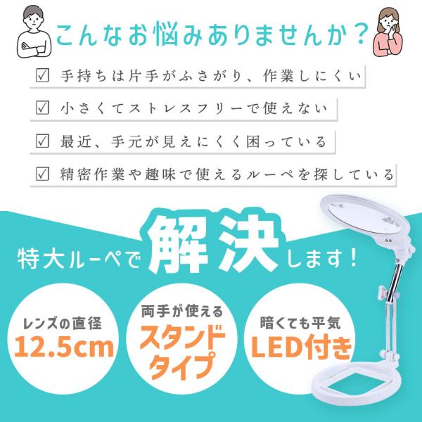 拡大鏡 スタンド ルーペ LED ライト付き ルーペ付き 虫眼鏡 ハンドライト 電気スタンド LEDライト 目に優しい スタンドルーペ 老眼鏡