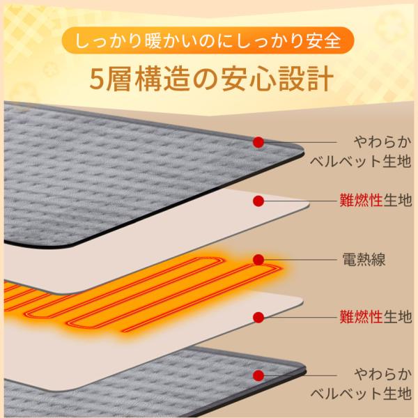 ホットマット PSE認証済み カーペット ブランケット タイマー機能付き 10段階温度調節 丸洗いOK 電気マット ホットカーペット 長方