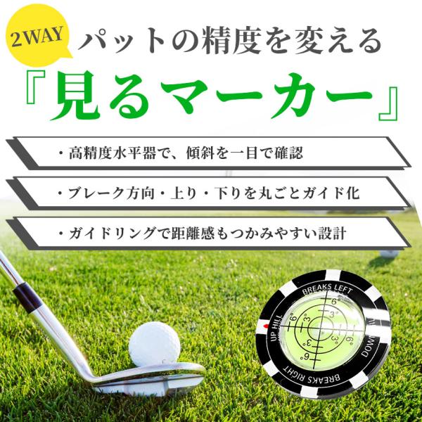 ゴルフマーカー 水平器付き パターライン 読みやすい グリーン傾斜確認 高精度レベル内蔵 マーカー おしゃれ 練習用品 パット向上 ゴルフ