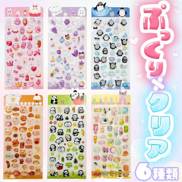 ドロップシール 6種類セット ボンボンシール おはじきシール 3D 立体 シール ぷっくり キラキラ クリア 透明 かわいい 可愛い シール帳 ノート デコ デコレーション シール交換 うさぎ 動物 パンダ ペンギン パン スイーツ おばけ ハート ピンク 食べ物 小物 魚 猫