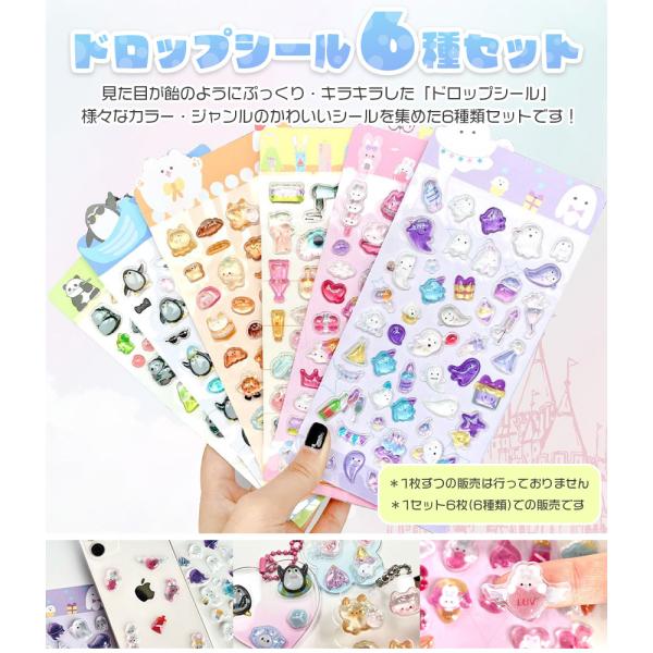 2個セットドロップシール 6種類セット ボンボンシール おはじきシール 3D 立体 シール ぷっくり キラキラ クリア 透明 かわいい 可愛い シール帳 ノート デコ デコレーション シール交換 うさぎ 動物 パンダ ペンギン パン スイーツ おばけ ハート ピンク 食べ物 小物 魚 猫