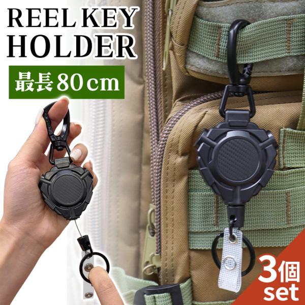 3個セット リールキーホルダー リールストラップ 伸びる 最大80cm ワイヤー リール キーリール 伸縮 鍵 カギ キーリング カラビナ 強力 金属ワイヤー 紛失防止 落下防止 キーチェーン パスケース ICカード アウトドア 釣り 工具 鞄 バッグ リュック 便利 グッズ 登山 ベルト 頑丈 付き