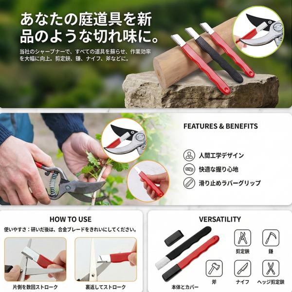 シャープナー 研ぎ器 包丁研ぎ器 包丁研ぎ 砥石 園芸用シャープナー 園芸用品 包丁 剪定バサミ 鎌 刈込バサミ ナイフ 斧 刃物 切れ味 復活 タンブステンカーバイド 握りやすい 波型ハンドル 軽量 コンパクト 庭木 剪定 手入れ キッチン アウトドア キャンプ