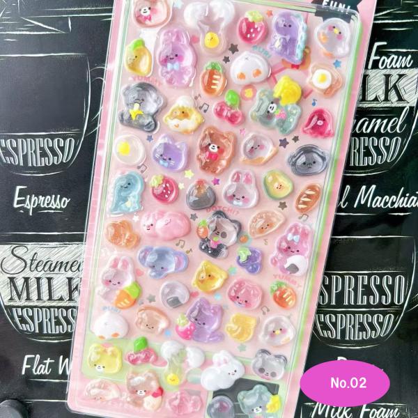 凹凸を再現した3Dステッカー。触って楽しく、見た目にも奥行きのあるデザインで、キュートでトレンド感のあるキャラクターがたくさんいます。自分だけの個性を演出するのに最適です。