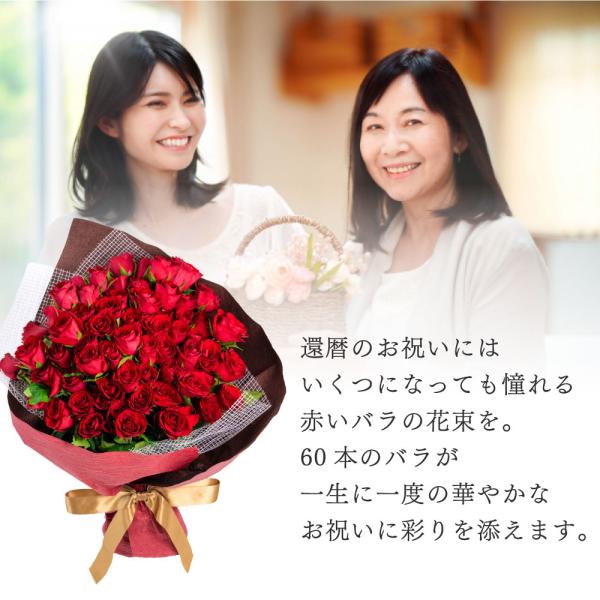 ローズブーケ バラ60本 還暦祝い 生花 お祝 誕生日 還暦 60歳 赤 レッド サプライズ プレゼント メッセージカード無料 花市場から直送 花束 産地厳選