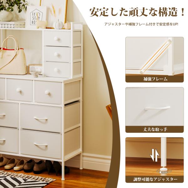 10杯ハイチェスト タンス 収納チェスト・ドレッサー/化粧台・テーブル 幅80cmマルチチェスト 収納棚 棚付き 布製引き出し 洋服・衣類収納・衣装ケース 箪笥