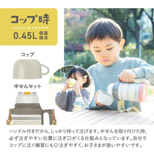 水筒 子供 450ml 490ml 500ml弱 直飲み コップ付き 保冷保温 2way ステンレス ピーコック魔法瓶公式 肩紐 肩ひも キッズ 幼稚園 園児 子ども ASN-W50 送料無料 3歳 2歳 4歳 カバー ポーチ ショルダー ベルト 入園祝い 通園 通学 遠足 入学 男子 男の子 女子 女の子 こども 小学校 小学生 保育園 グレー イエロー ポイント利用
