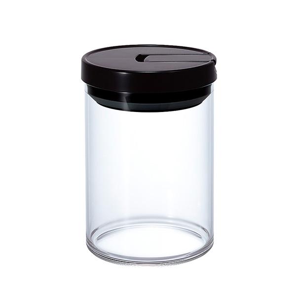 HARIO 耐熱 ガラス製 ポット ケース 容器 入れ物 入れ 珈琲 紅茶 ドライフルーツ シリアル パスタ 乾麺 蓋つき ふたつき 保管 保存 密封性 密閉性 防臭 ニオイ漏れ防止 防湿 透明 中身が見える 円形 円筒 コーヒー粉200g 幅9.9 奥行9.9 高さ14.2 口径9.6 センチ cm 800ml おしゃれ シンプル 人気 便利 使いやすい キッチン 台所 用品 グッズ 耐熱温度差120℃ 小物 収納 食洗器対応 ブラック 黒 4977642143074